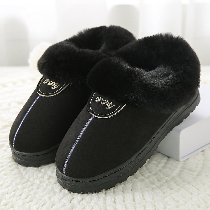 Comemore Winter Warm Women Slippers Female Platform Furry Fur Plush Men's Indoor Home Slipper House Shoes Woman Plus Size 44 New