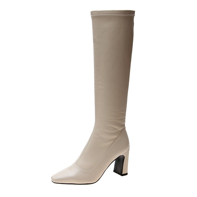 comemore Women New Pointed Toe High Heels Long Boots Winter Warm Short Plush Knee-high Booties Side Zipper Leather shoes Female