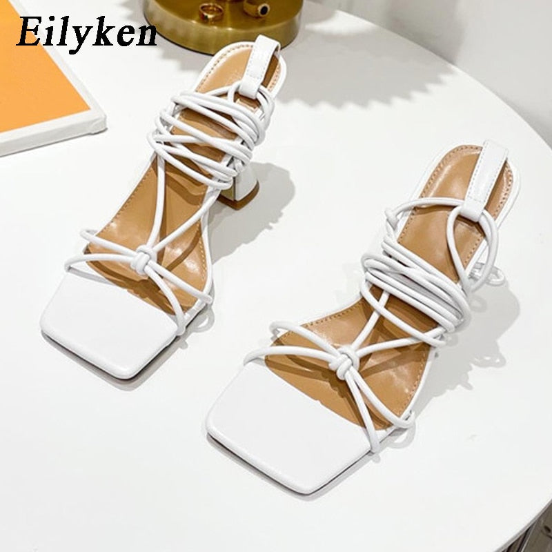 Eilyken 2022 New Design Ankle Strap Sandals Women Square heel Party Lace-Up Summer Strange Style Sandal Shoes size 41 42