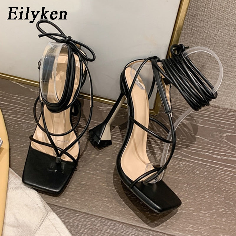 Eilyken 2022 New Women Gladiator knee high Sandals Open toe Lace up Cross Strappy Sandals Women High heels Fashion Sexy shoes