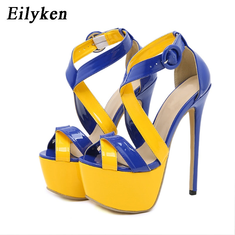 Eilyken Blue High Heels Women Fashion Open Toe Ankle Buckle Strap Platform Sandals Ladies Nightclub Party Dress Shoes Size 42