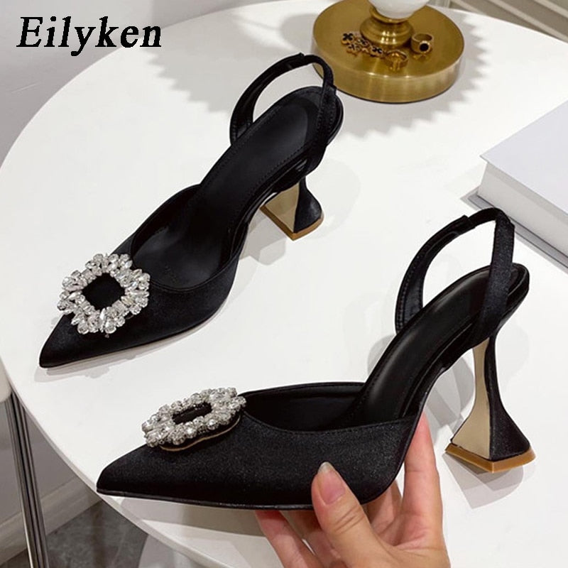 Eilyken Fashion Brand Women Pumps Crystal Slingback Summer Pointed Toe Comfortable Triangle Heeled Party Wedding Bride Shoes