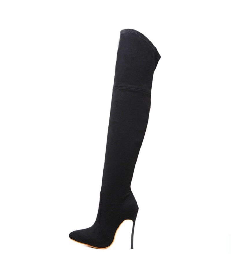 Eilyken Sexy Over the Knee high Boots Woman Flock Leather Thick high heels Women Boots Winter Black Apricot Brown Party shoes