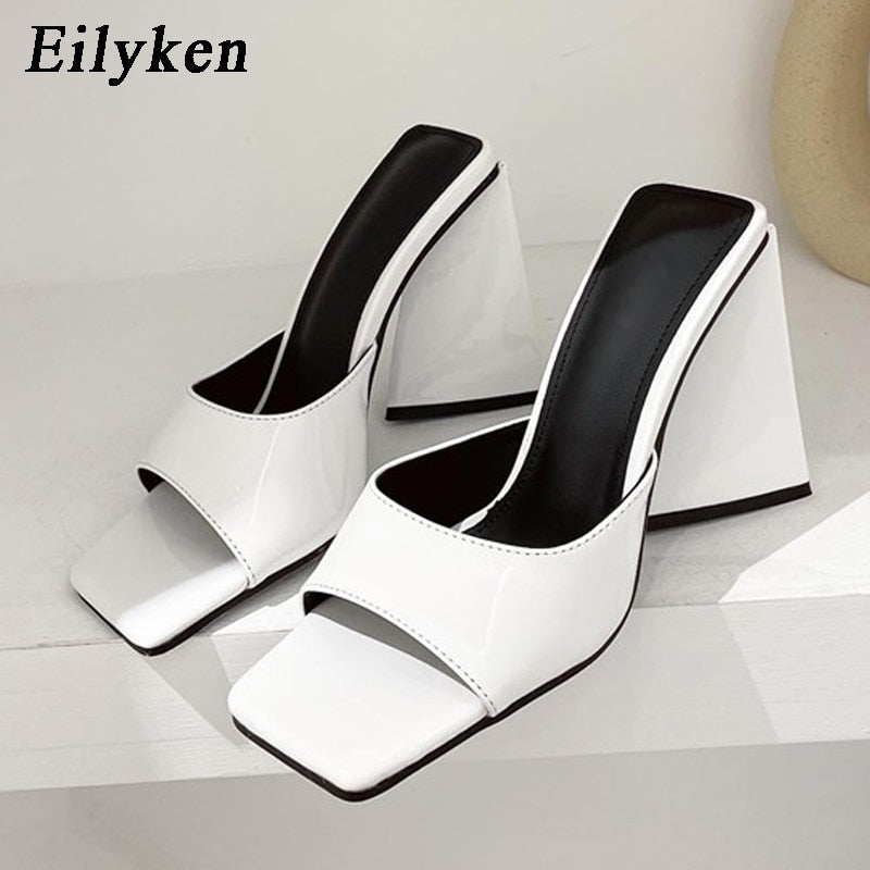 Eilyken Summer Orange Black Triangle Thick heel Slippers Sexy Street Woman Party Peep toe Dress shoes size 35-41