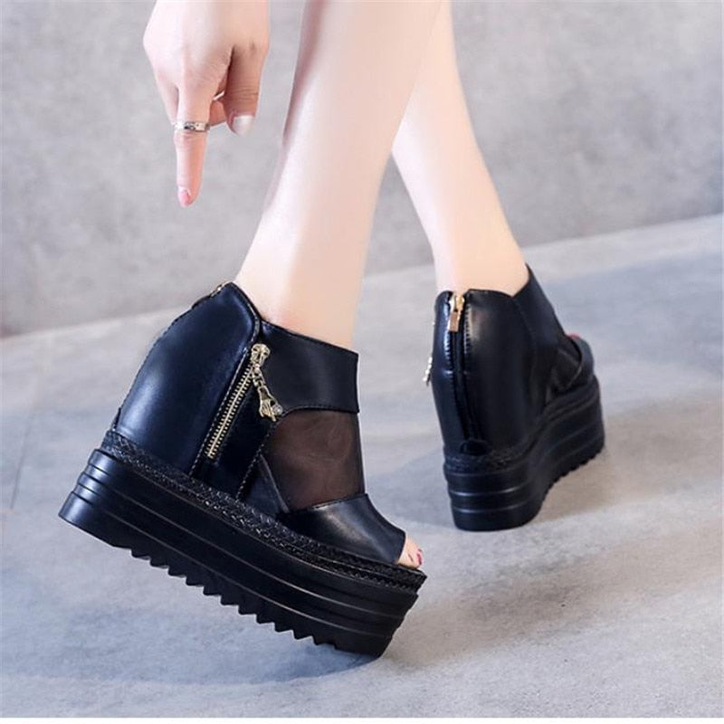 European Wedges with High-heeled Sandals Muffin Thick-bottom Fish Mouth Shoes New Internal Increase Women's Shoes Cool Boots