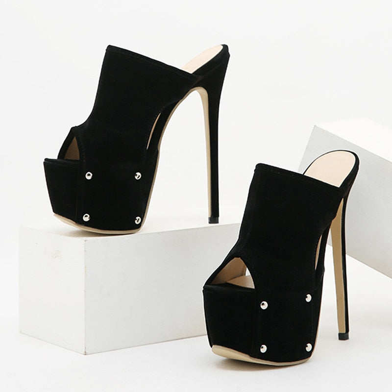 Extrem High Heels Sexy 16CM Slippers Women Fashion Peep Toe Stiletto Rivet Design Platform Sandals Party Pole Dance Shoes Pumps