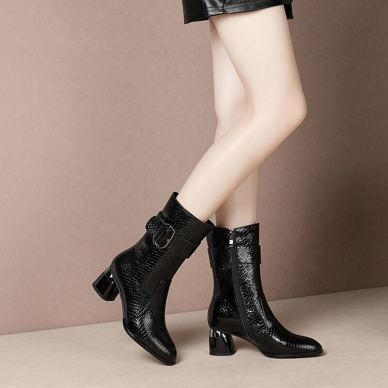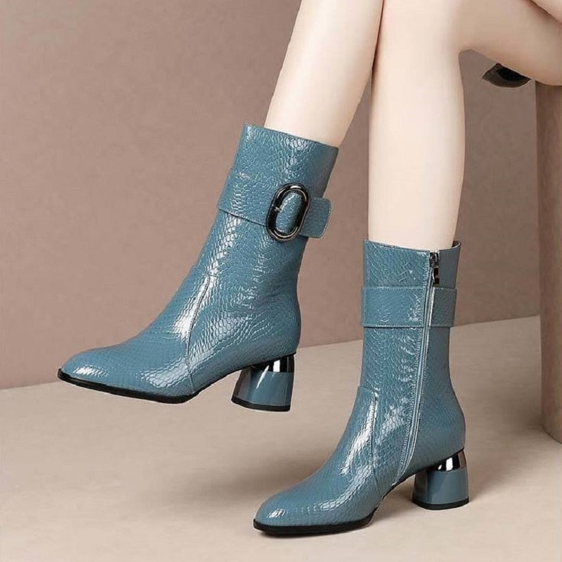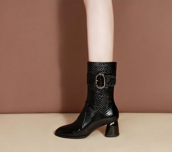 Fall/Winter Mid Calf Boots Woman 2021 5.5cm Heel Short Boots Women's Winter Shoes Plush Booties Zip Buckle for Female Black Blue