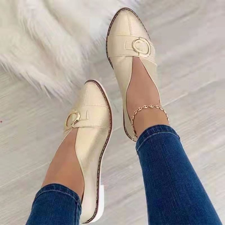 Fashion Metal Buckle Shoes Women Slip On Ballet Flats Casual Shoes Female Flat Ballerina Low Heel Soft Shoe Big Size