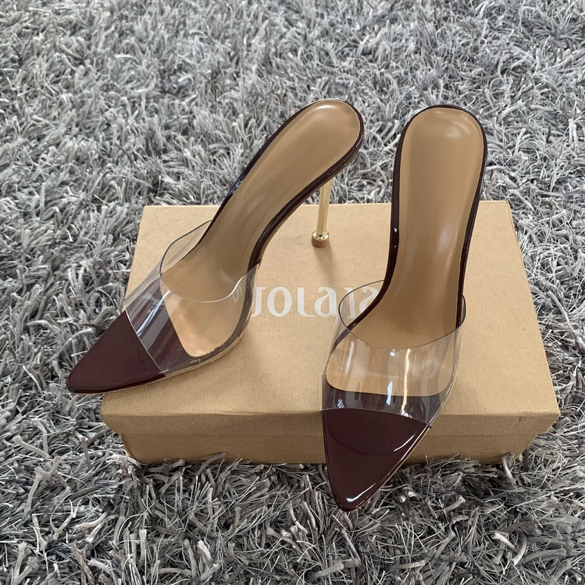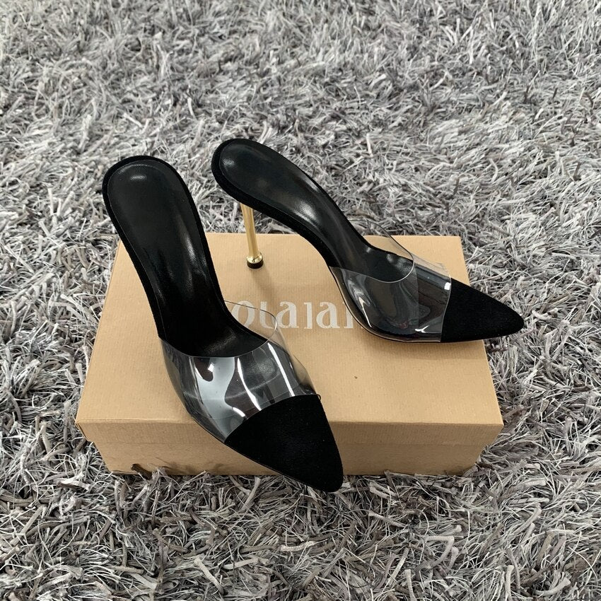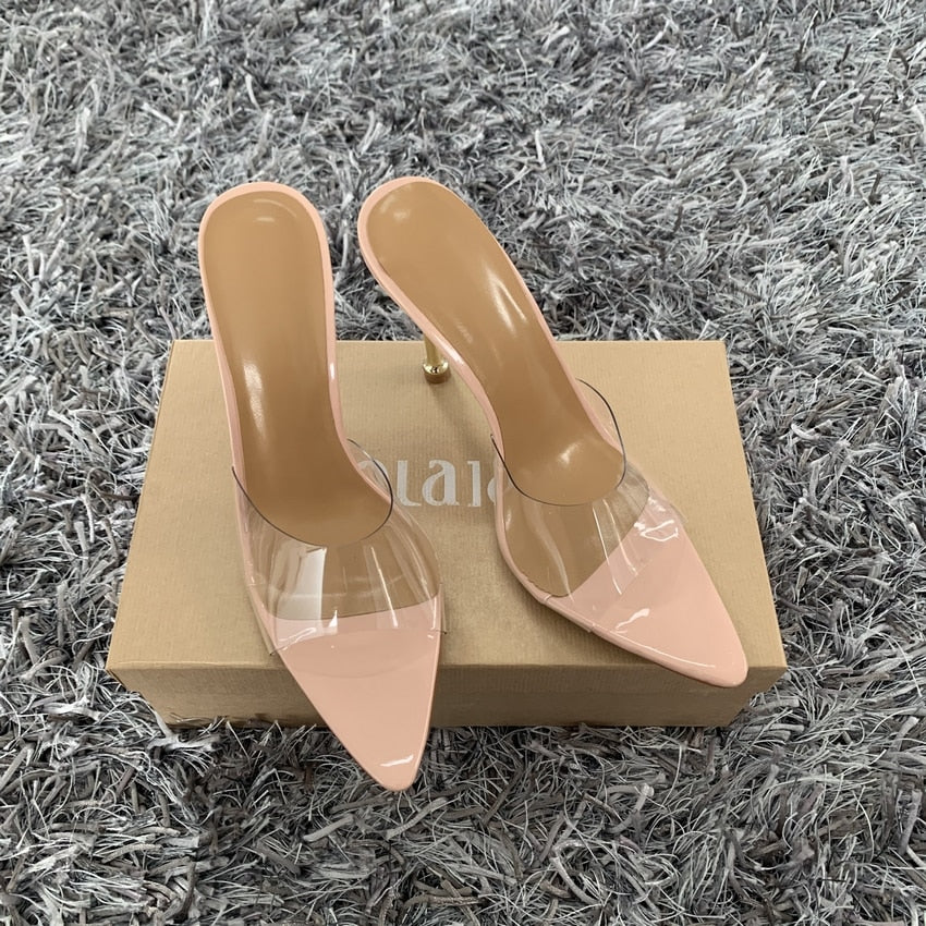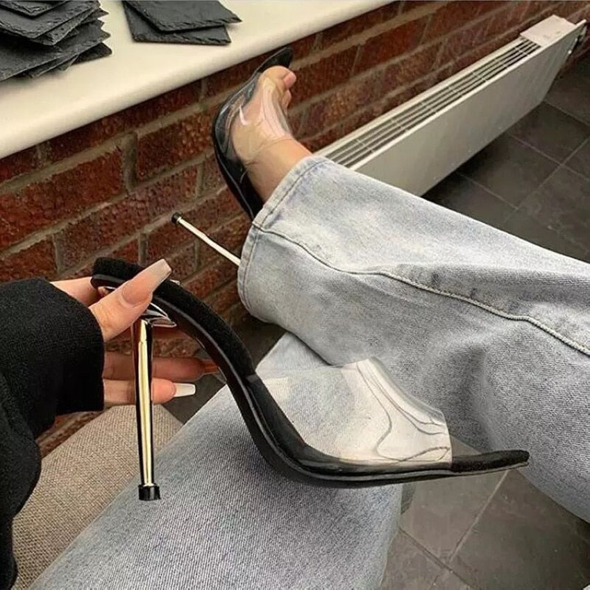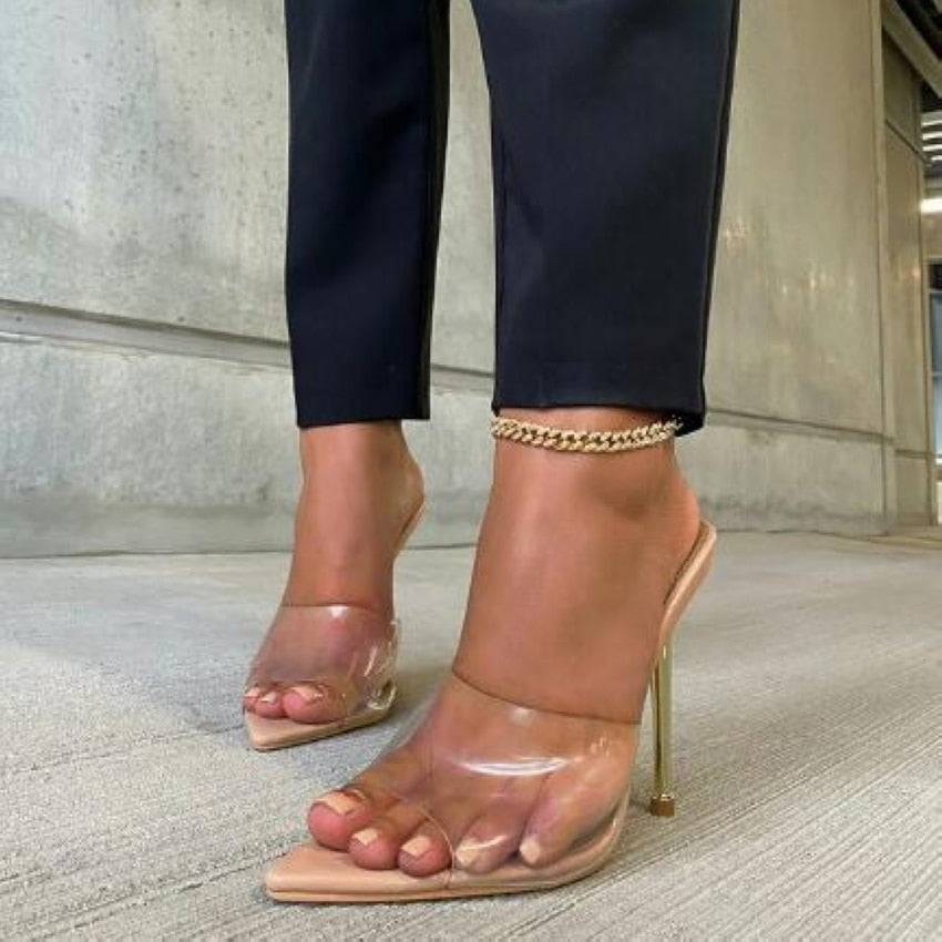 Fashion PVC Women Pumps Summer Pointed Toed High Heels Women Metal Stiletto Heel Sandals Slippers Woman Party Mules Shoes