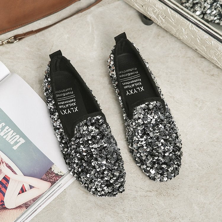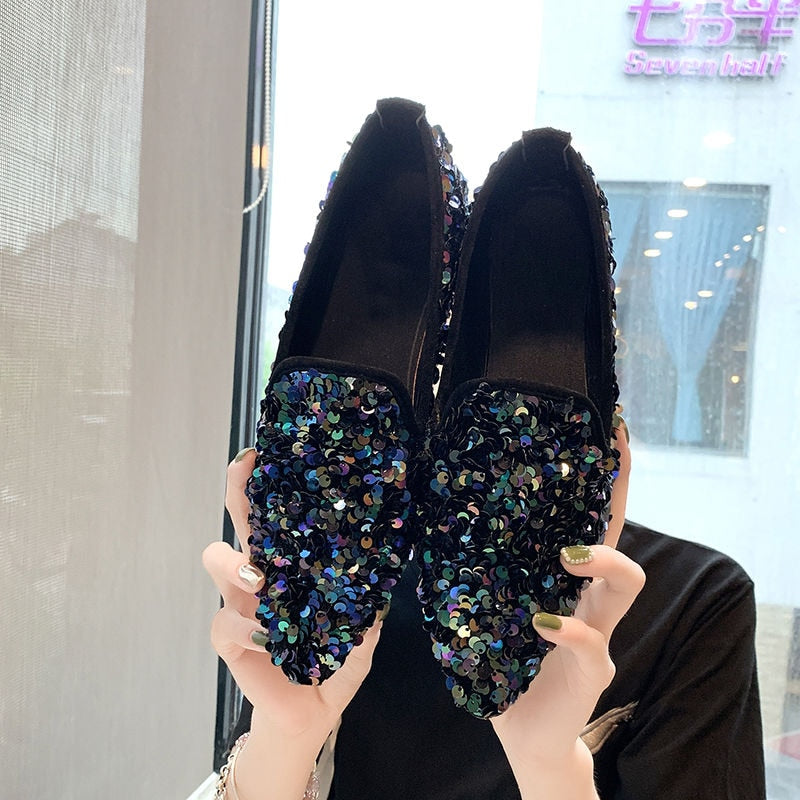 Fashion Women Ballet Shoes Leisure Spring Autumn Ballerina Bling Flash Sequins Flats Shoes Princess Shiny Pointed Wedding Shoes