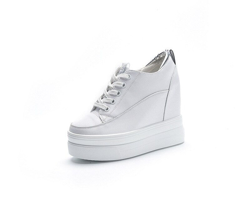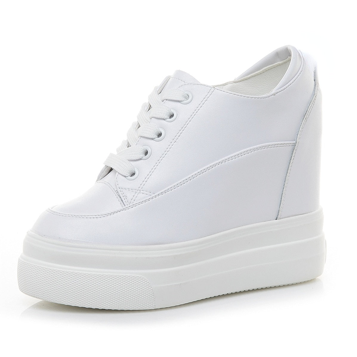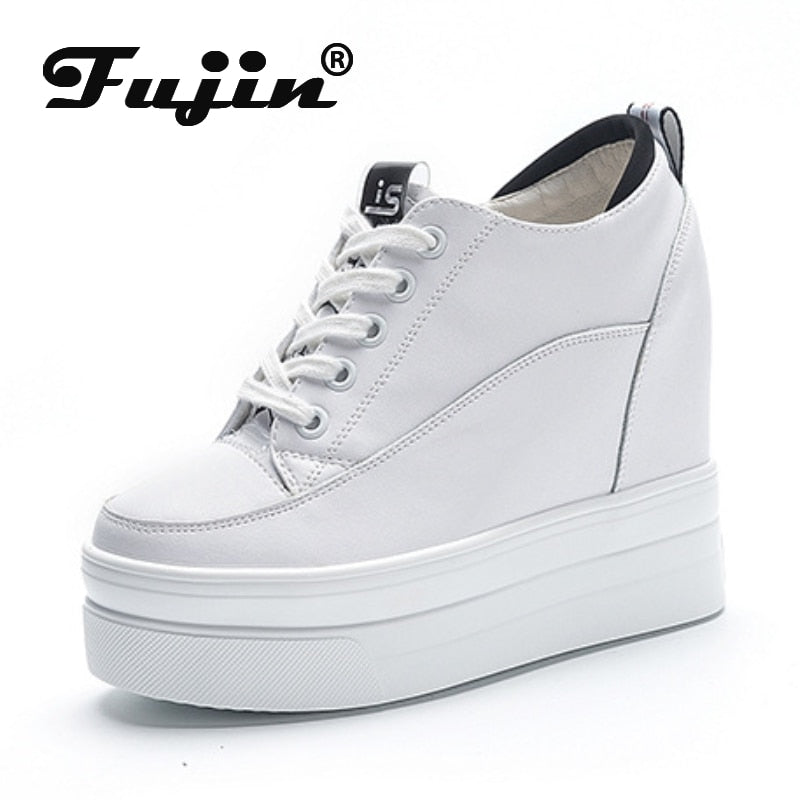 Fujin 11cm Platform Wedge Sneakers Shoes Genuine Leather Women Fashion Sneakers Hidden Heel Shoes Spring Autumn Summer Pumps
