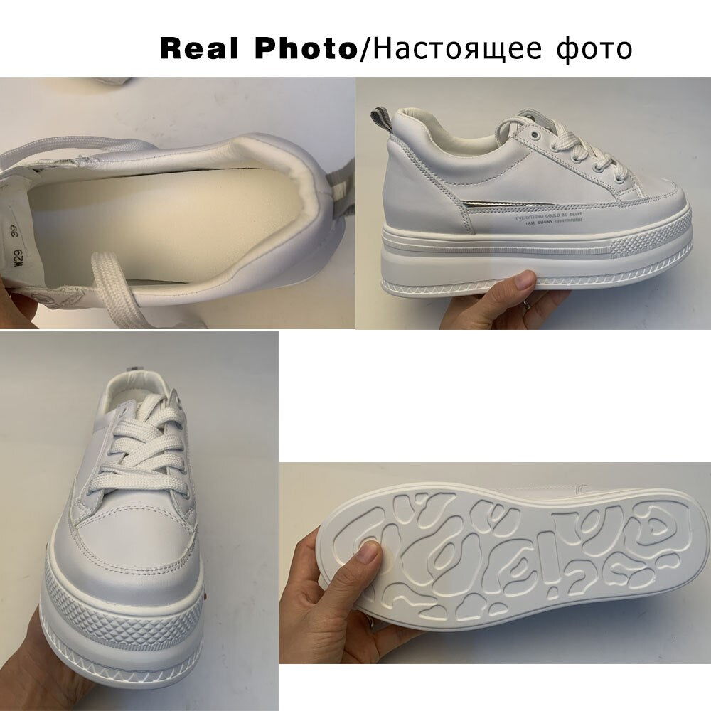 Fujin 7cm Microfiber Leather Women Casual Shoes White Platform Wedge Hidden Heel Shoes White Shoes Chunky Sneakers Skateboard