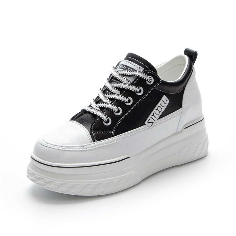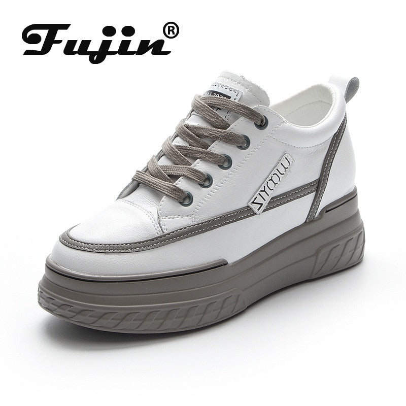 Fujin 8cm Genuine Leather Women Shoes Platform Wedge Sneakers Chunky Shoes Hidden Heel White Black Women Casual Shoes Summer