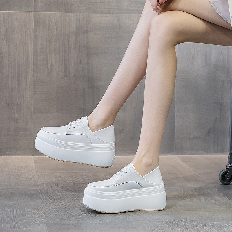 Fujin 8cm Height Increased Genuine Leather Women Casual Shoes Chunky Sneakers Platform Flats Women Vulcanized Shoes Za Fashion