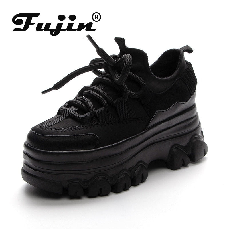 Fujin 9cm Platform Wedge Sneakers Genuine Leather Women Shoes Chunky Sneakers for Female Spring Autumn Warm Fur Winter Shoes