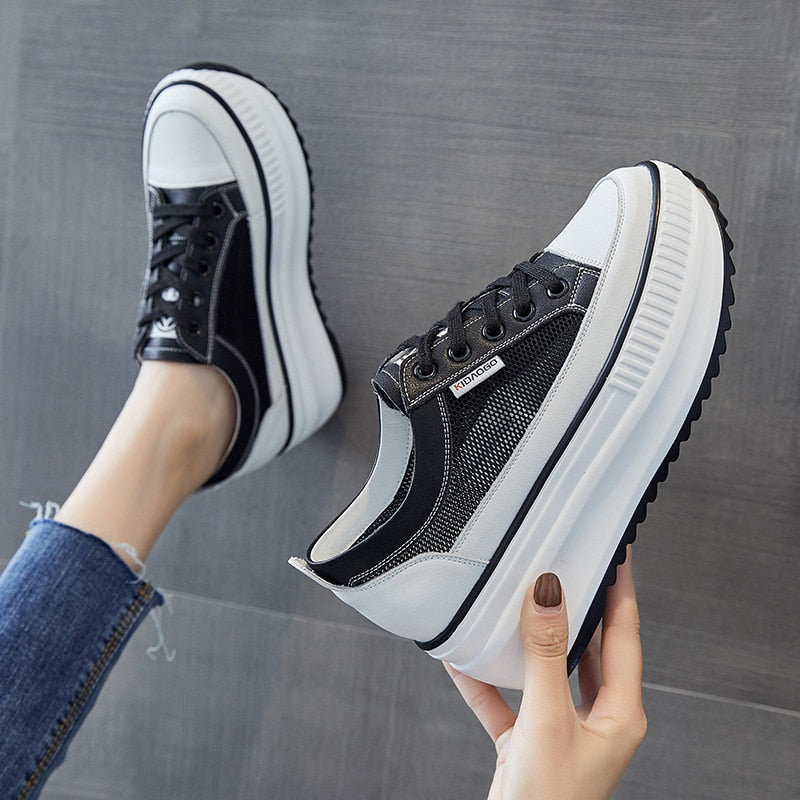 Fujin Dad Shoes Chunky Sneakers Wedge Heel Platform White Air Mesh Hollow Shoes Casual Shoes Sneakers Vulcanized Shoes Winter