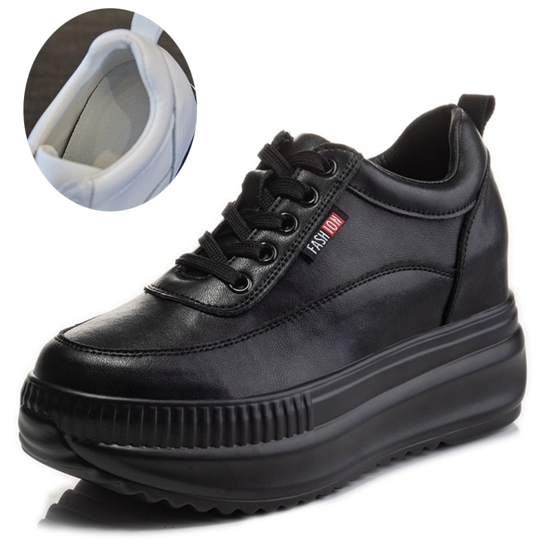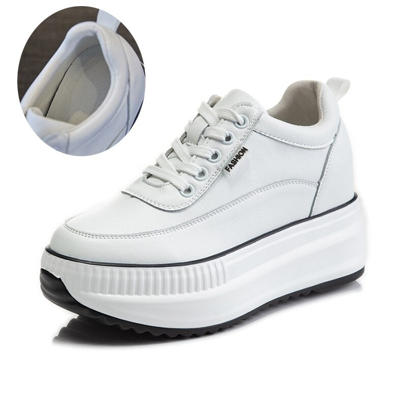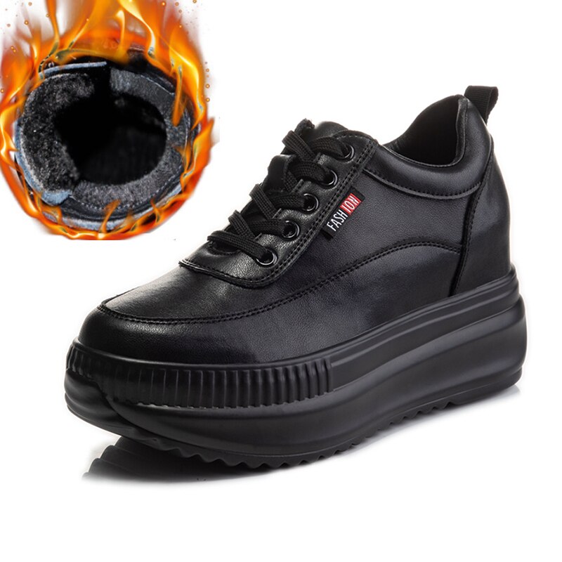 Fujin Dad Shoes Chunky Sneakers Wedge Heel Platform White Autumn Winter Shoes Casual Shoes Sneakers Vulcanized Shoes Warm Fur