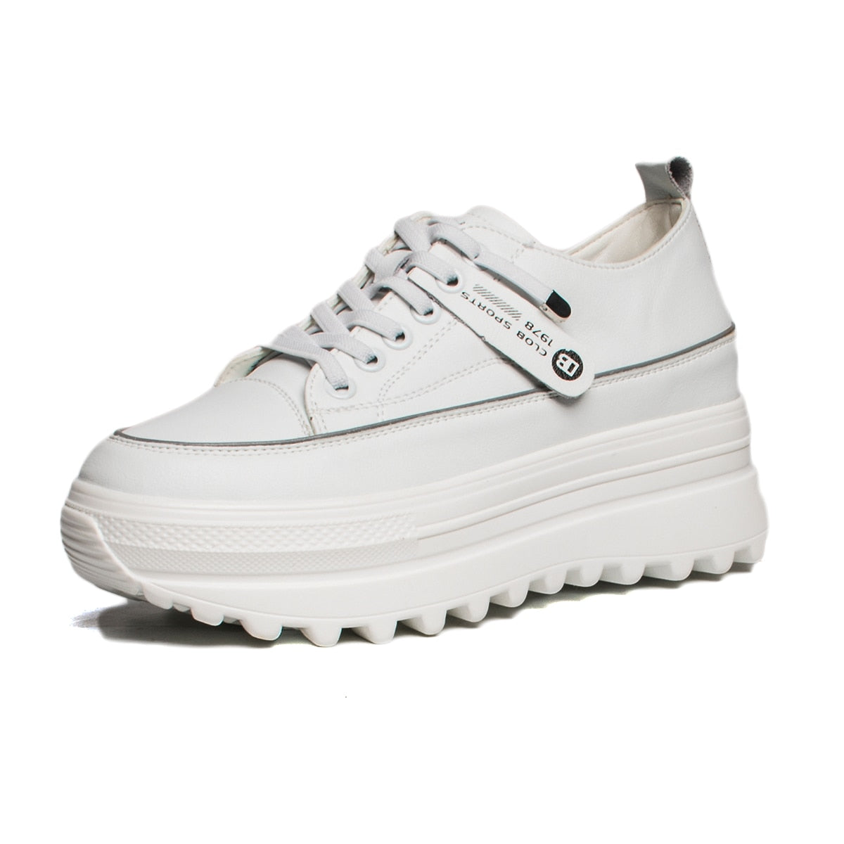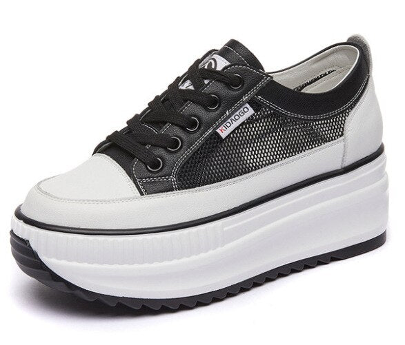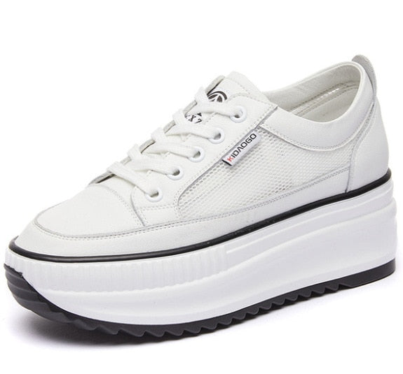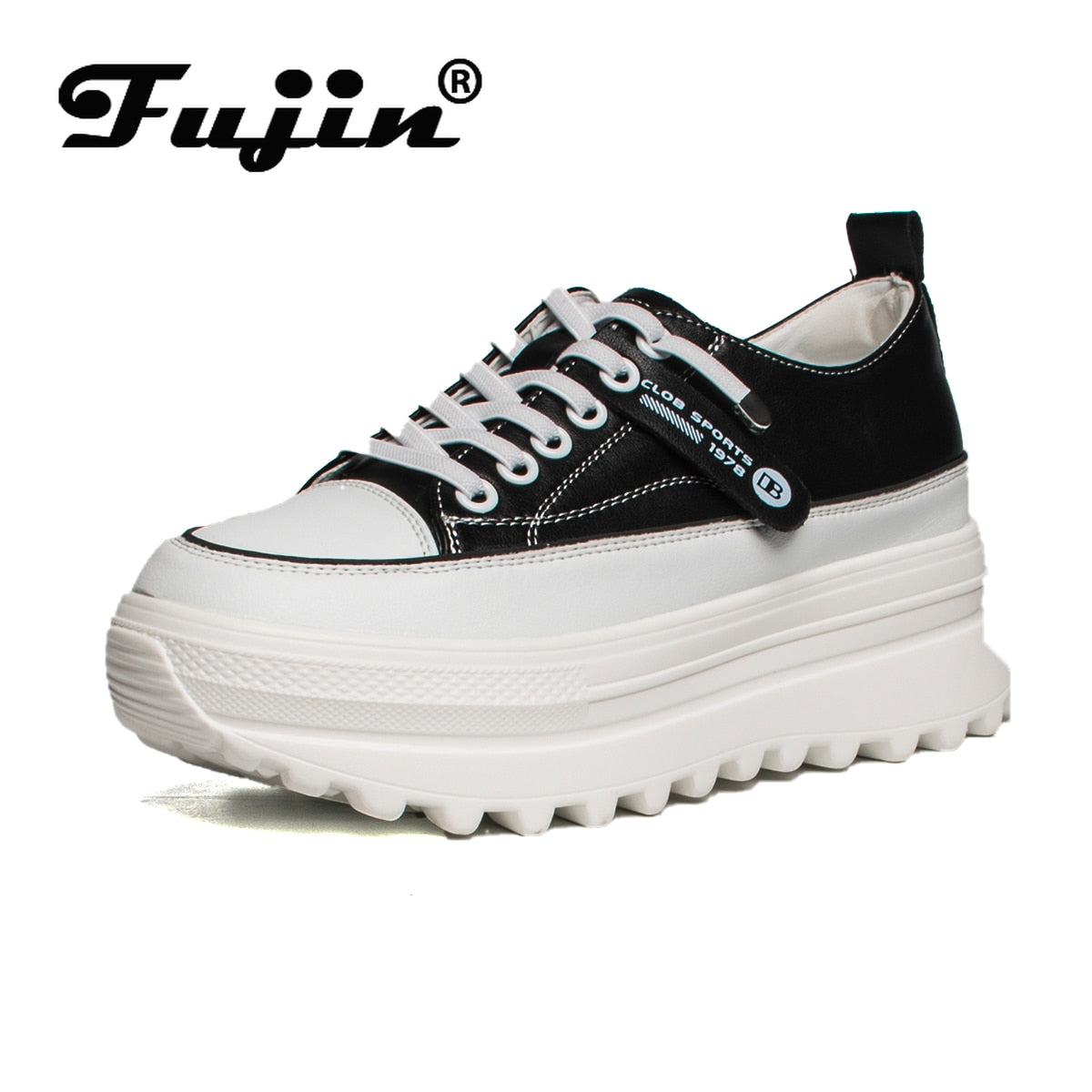 Fujin Genuine Leather 8cm Dad Shoes Chunky Sneakers Platform Heel Wedge Air Mesh Summer Shoes Vulcanized White Sneakers 2021