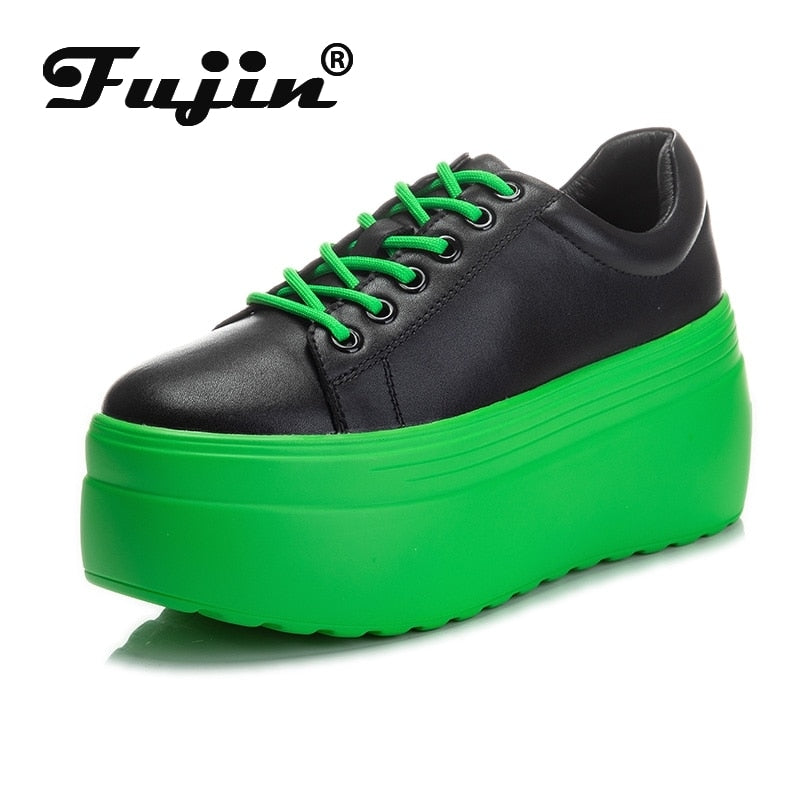 Fujin Genuine Leather Women Casual Shoes Super Thick 8cm Platform Wedge Women Fashion Sneakers Chunky Shoes Summer Skateboard