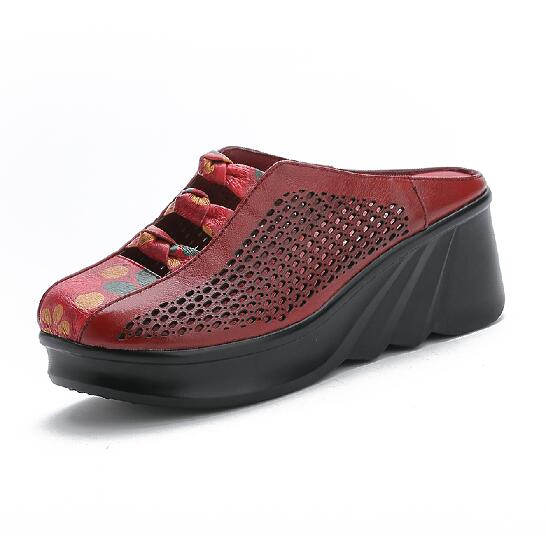 GKTINOO 2022 Fashion Cut-outs Women Shoes Slippers Summer Closed Toe Wedge Sandals Genuine Leather Lady Slides Shoes Woman