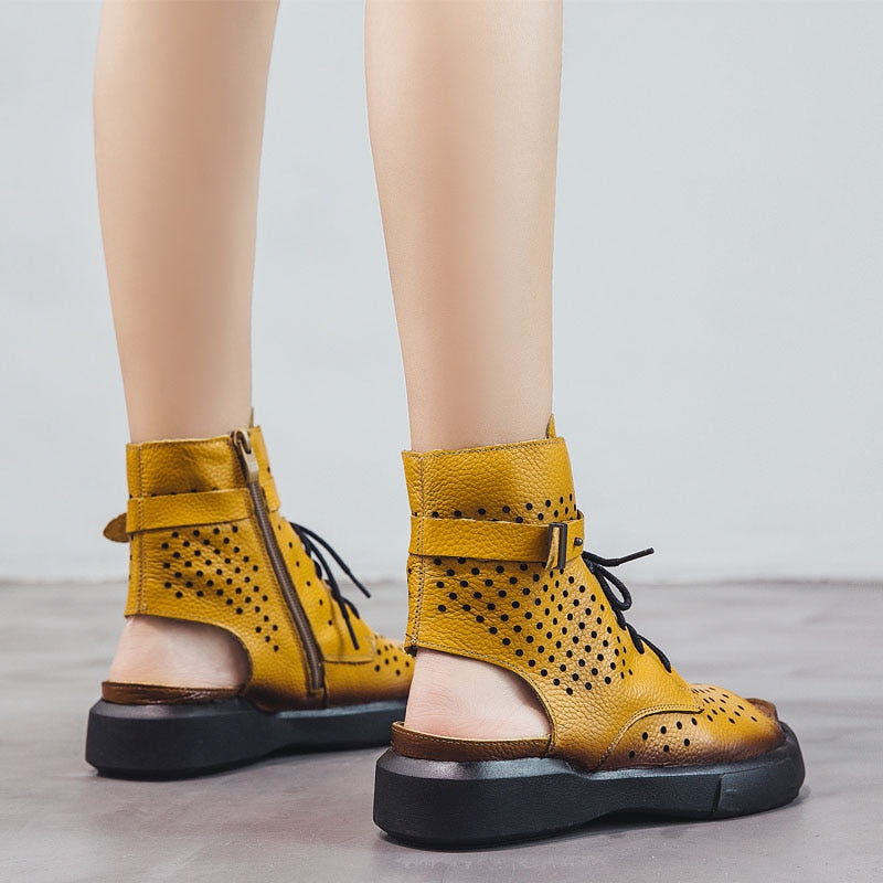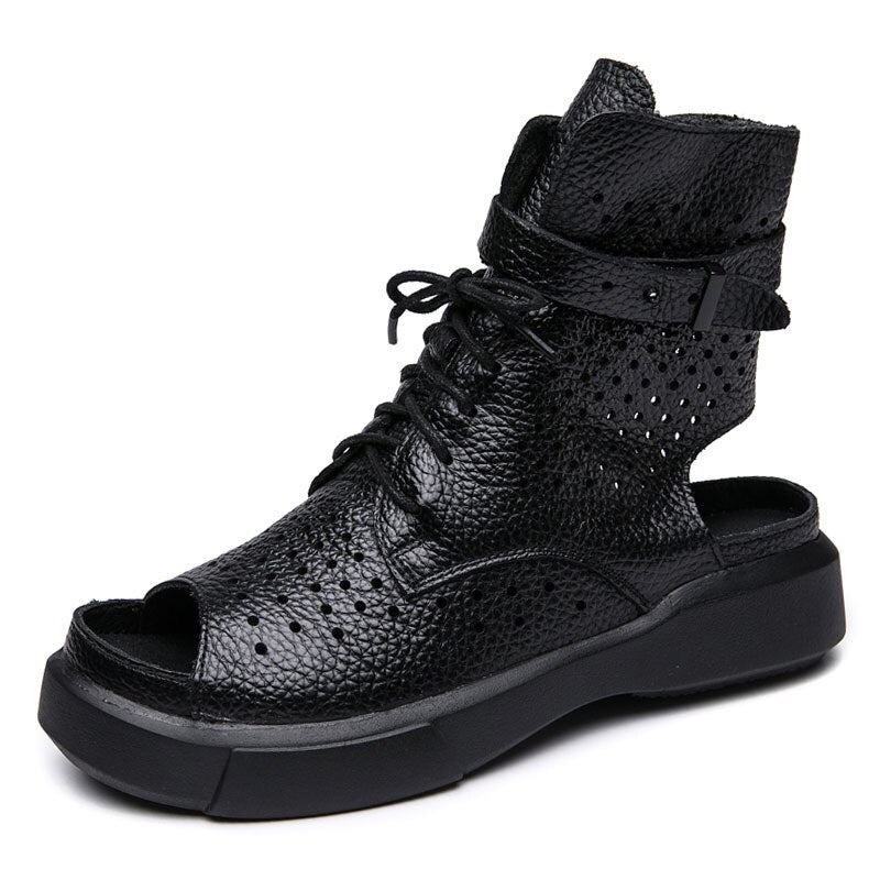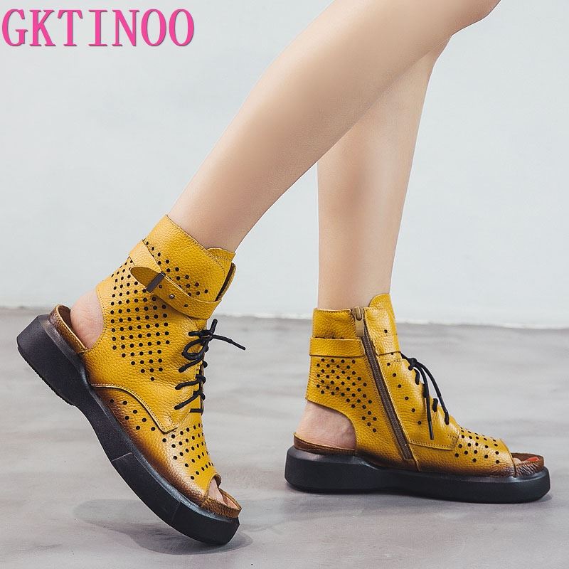 GKTINOO 2022 Fashion Ladies Sandals Hollow-Out Gladiator Sandals Women Flat Shoes Open Toe Genuine Leather Summer Cool Boots