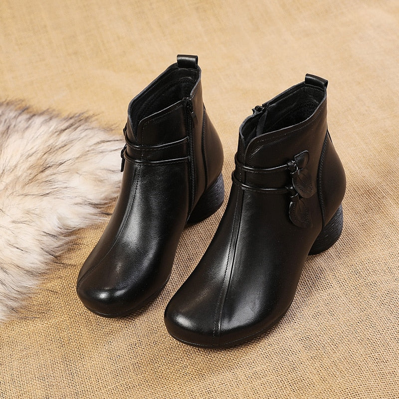 GKTINOO 2022 New Autumn Winter Thick Heel Ankle Boots Women Warm Boots Shoes Handmade Genuine Leather Flowers Zipper Retro Boots