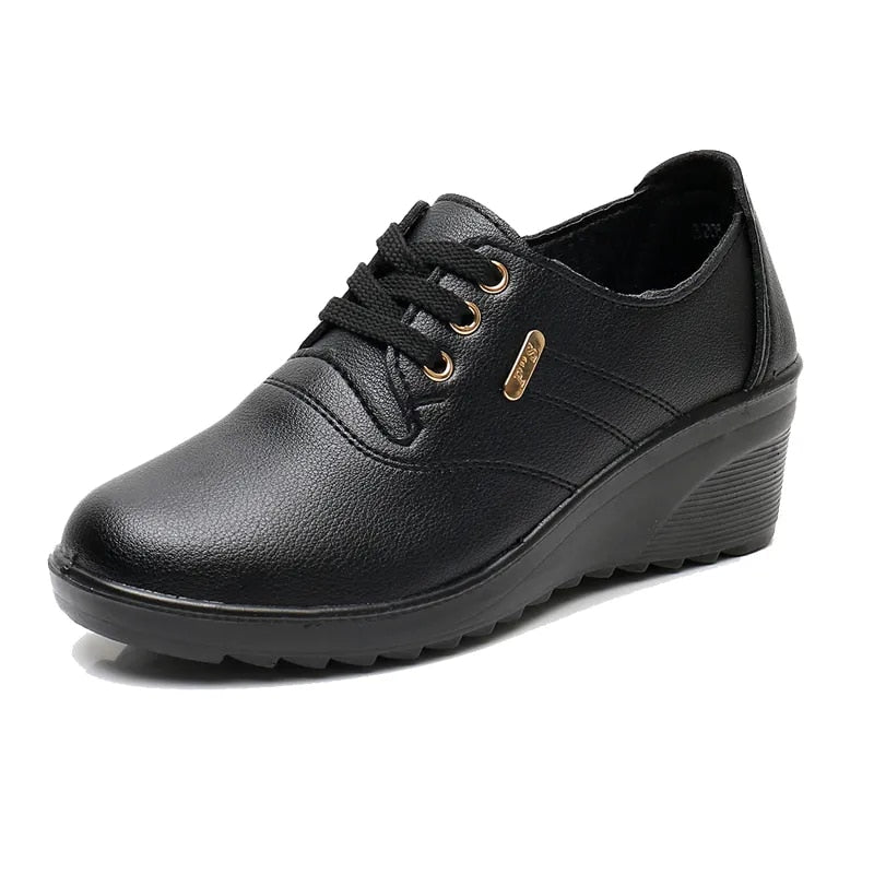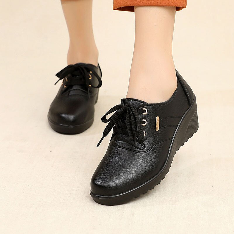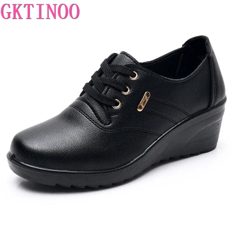 GKTINOO 2022 Spring Autumn Women's Leather Sneakers Platform Shoes Lady Wedge Casual Shoes Mother High Heels Lace-up Shoes
