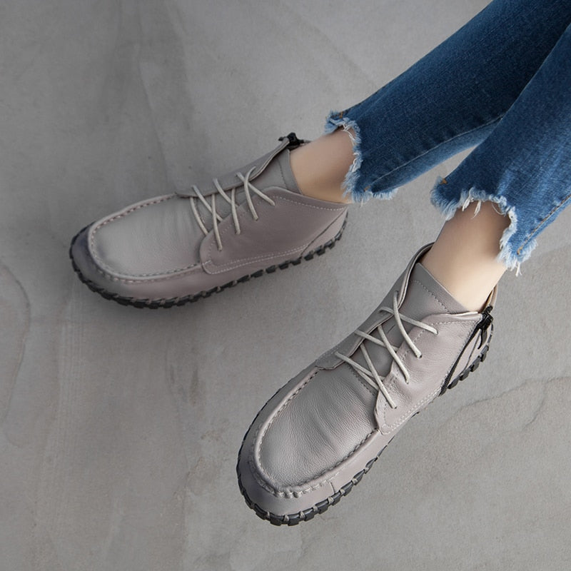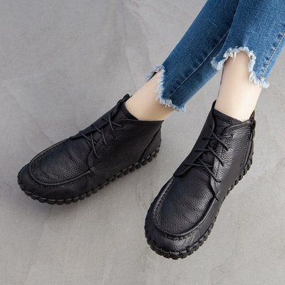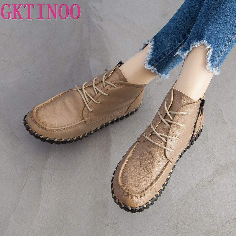 GKTINOO 2022 Vintage Style Genuine Leather Women Boots Flat Booties Soft Cowhide Women's Shoes Ankle Boots zapatos mujer