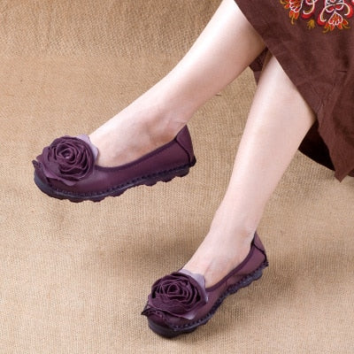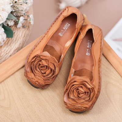 GKTINOO Fashion Flower Design Round Toe Solid Color Flat Shoes Vintage Genuine Leather Women Flats Handmade Women's shoes