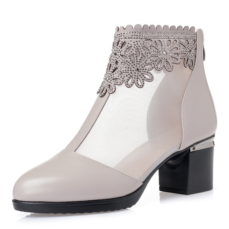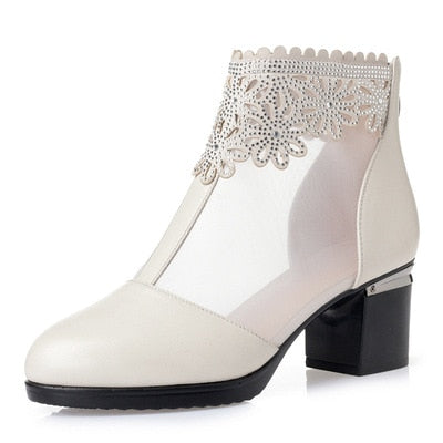 GKTINOO Fashion Sandals Mesh Genuine Leather Shoes Woman High Heel Sandals 2021 New Breathable Cool Boots Summer Women Sandals