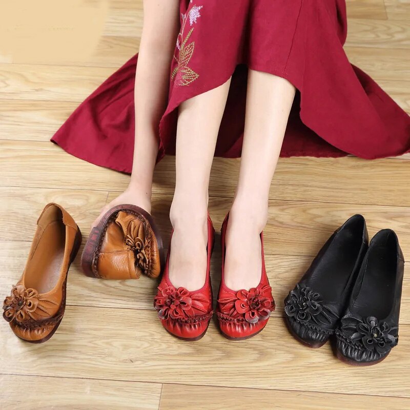 GKTINOO Genuine Leather Loafers For Women 2022 Flower Woman Flats Mocassins Femme Women's Loafers Spring Summer Slip-On Shoes