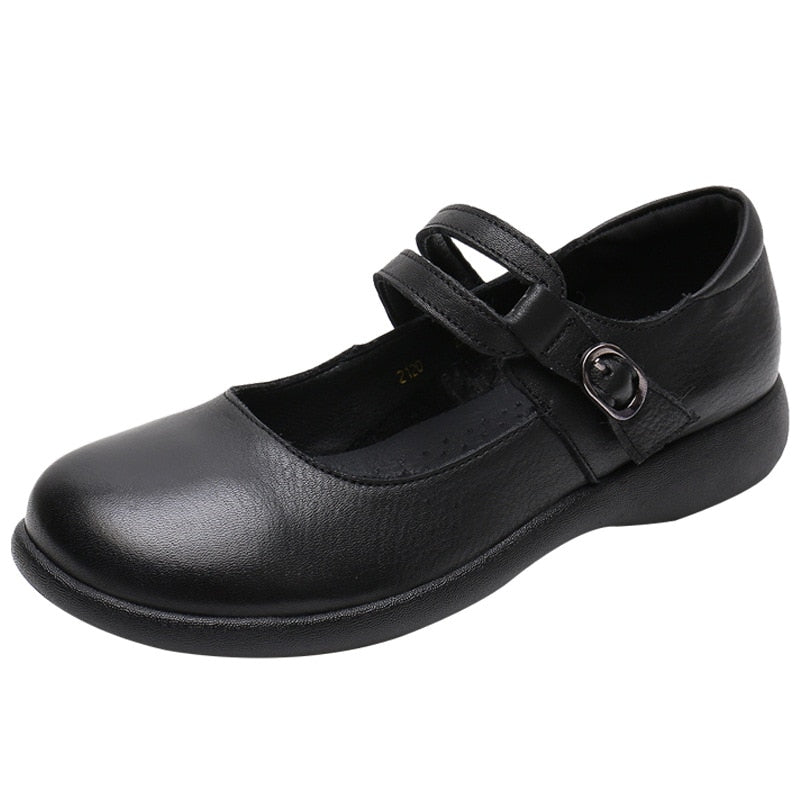 GKTINOO Leather Shoes Women Mary Janes Genuine Leather Women's Shoes Round Toe Belt Buckle Ladies Casual Flats Large Size