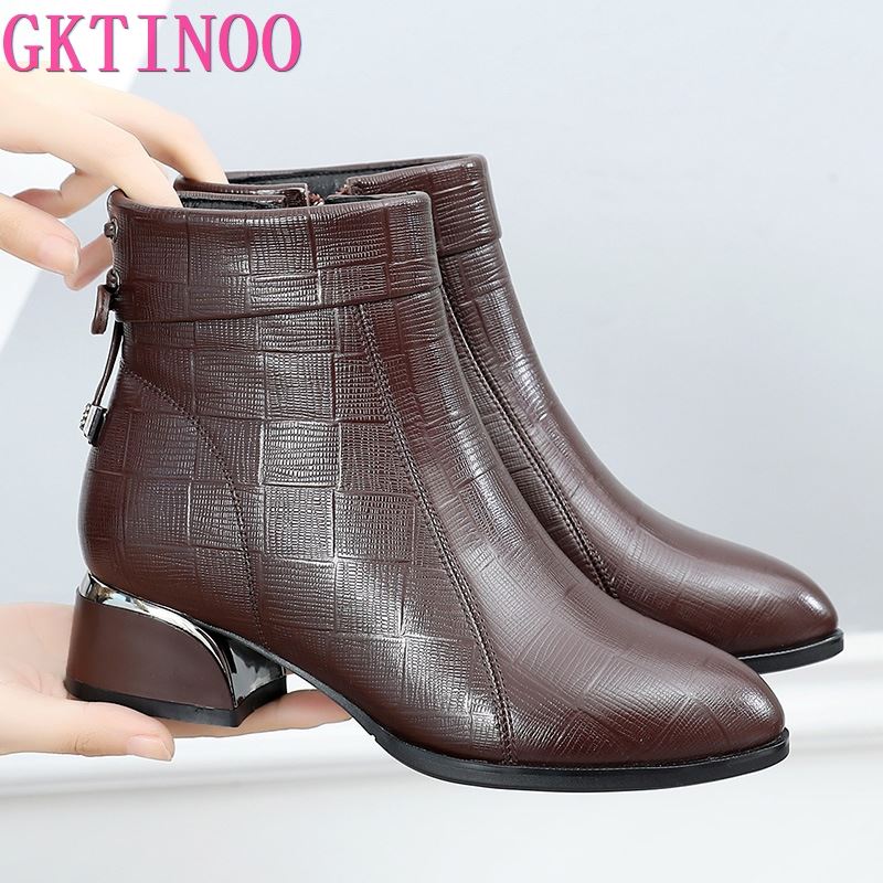 GKTINOO New Ankle Boots Women Pointed Toe Thick Heels Genuine Leather Shoes Short Boots Soft Sole Footwear Plus Size 35-43