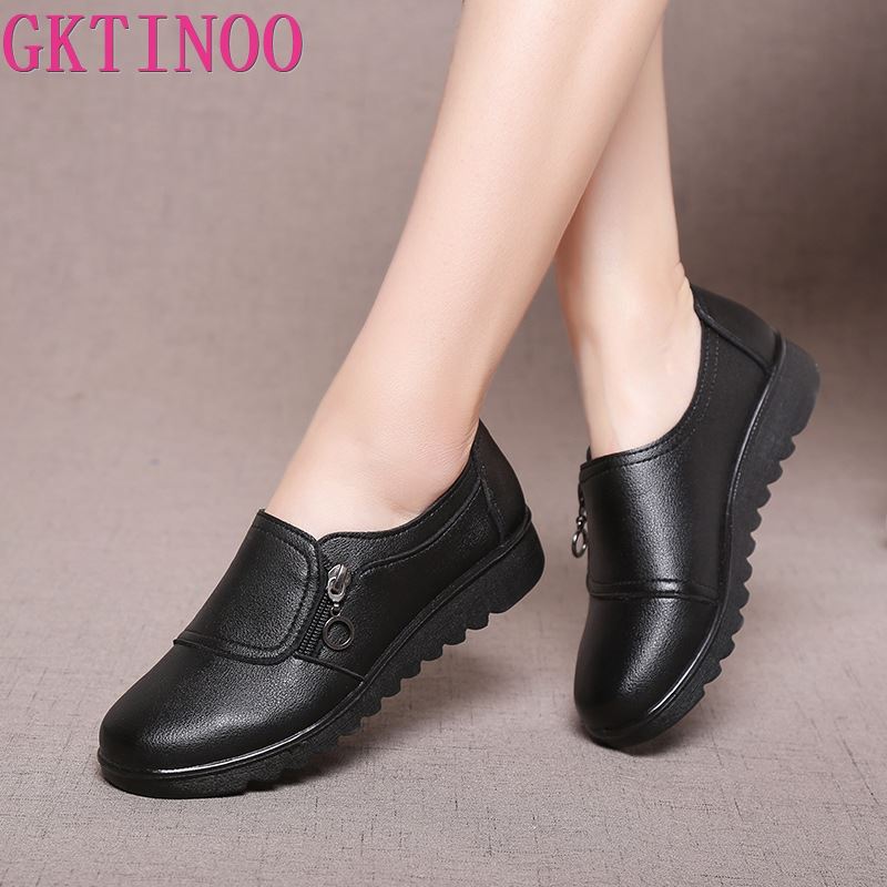 GKTINOO New Autumn Women's Shoes Fashion Casual Women Leather Flat Shoes Ladies Slip On Comfortable Black Work shoes Flats