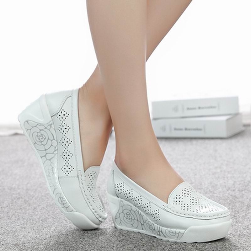 GKTINOO New Women's Genuine Leather Platform Shoes Wedges White Lady Casual Shoes Swing Mother Shoes Size 35-40