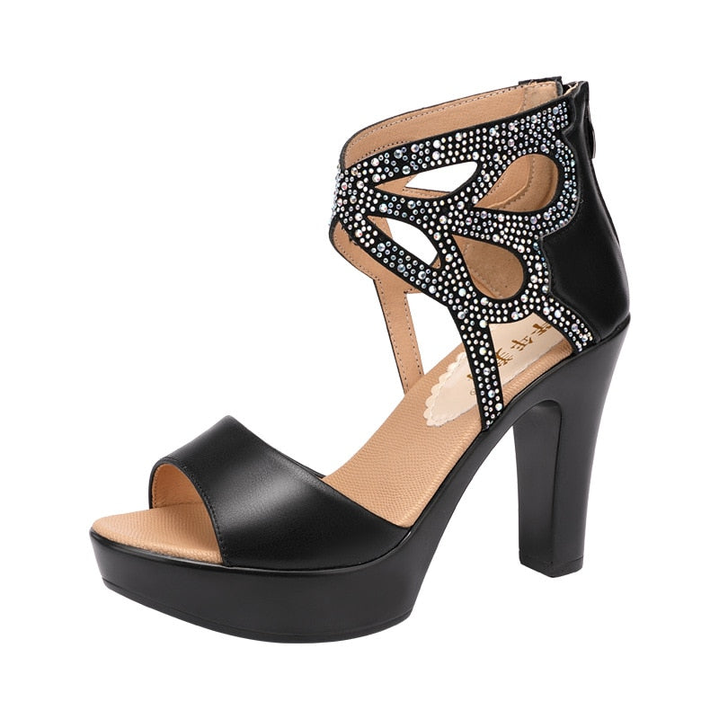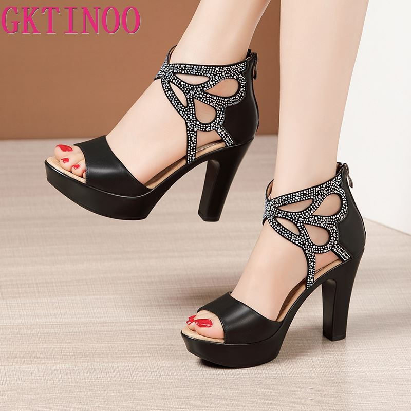GKTINOO Open Toe Rhinestone Platform Shoes Ladies 2022 Summer Elegant Office Party High Heels Gladiator Sandals Plus Size 32-43