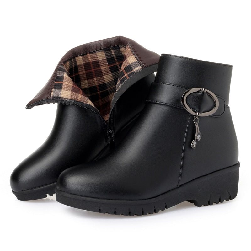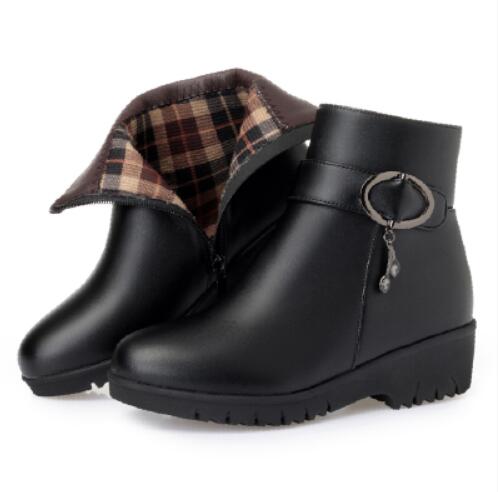 GKTINOO Snow Boots Soft Leather Women's Shoes Mother Ladies Female Winter Wool Fur Wedges Warm Boots Plus Size 35-43