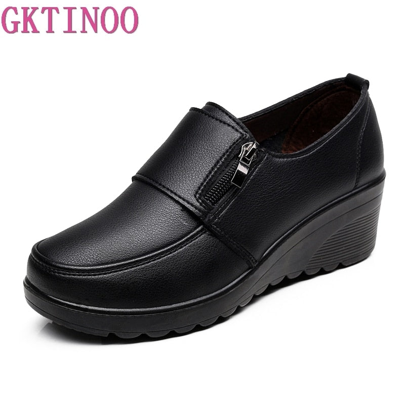 GKTINOO Spring Autumn Women's fashion Pumps shoes woman soft leather wedges single casual shoes mother high heels shoes