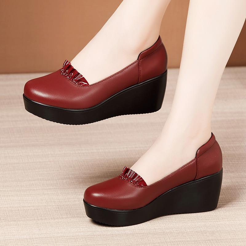 GKTINOO Wedges Shoes for Women 2022 Autumn Spring Platform Pumps Woman High Heels Leather Office Shoes Ladies Plus Size 33-43