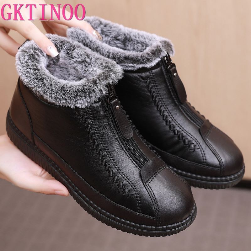 GKTINOO Winter New Leather Waterproof Snow Boots Women's Plus Velvet Warm Short Boots Ladies Casual Lightweight Flat Boots