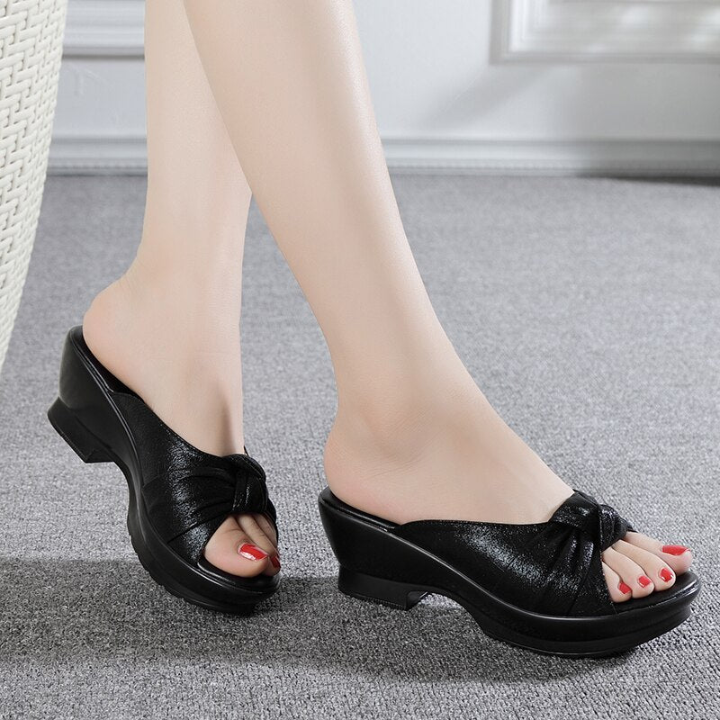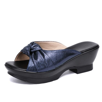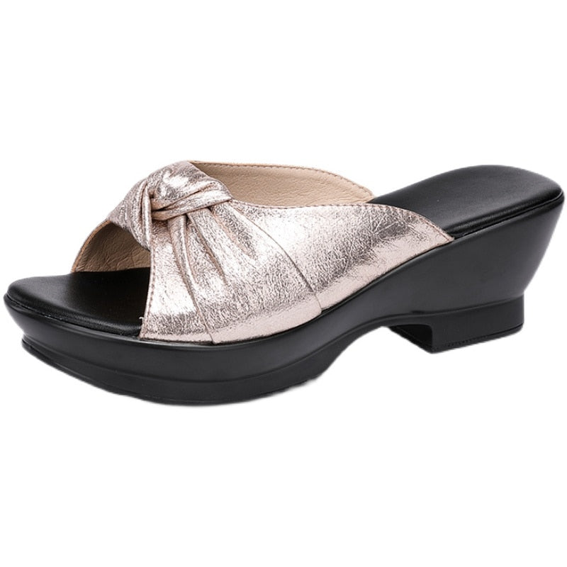 GKTINOO Women Slippers Genuine Leather Shoes Summer Outdoor 2022 New Fashion Non-slip Women's Thick-Heeled Slides Sandals