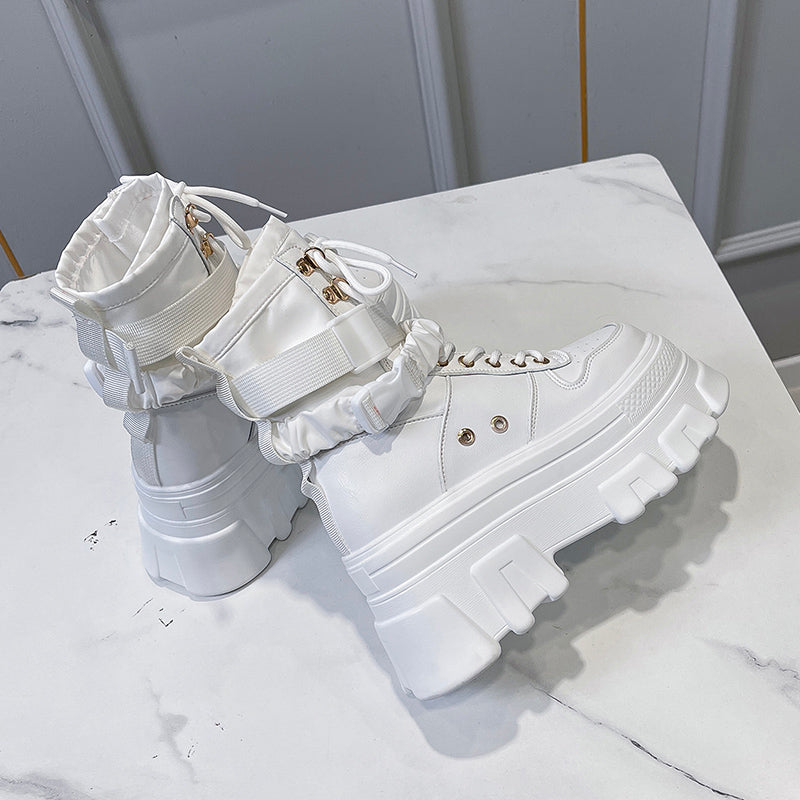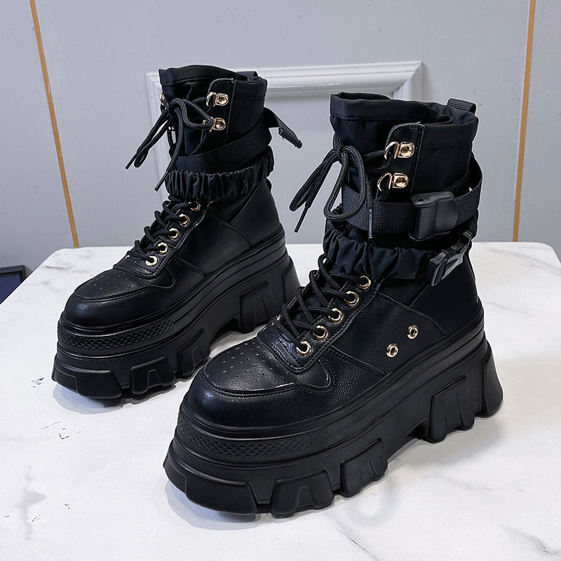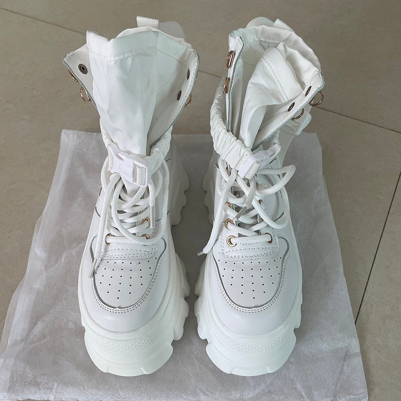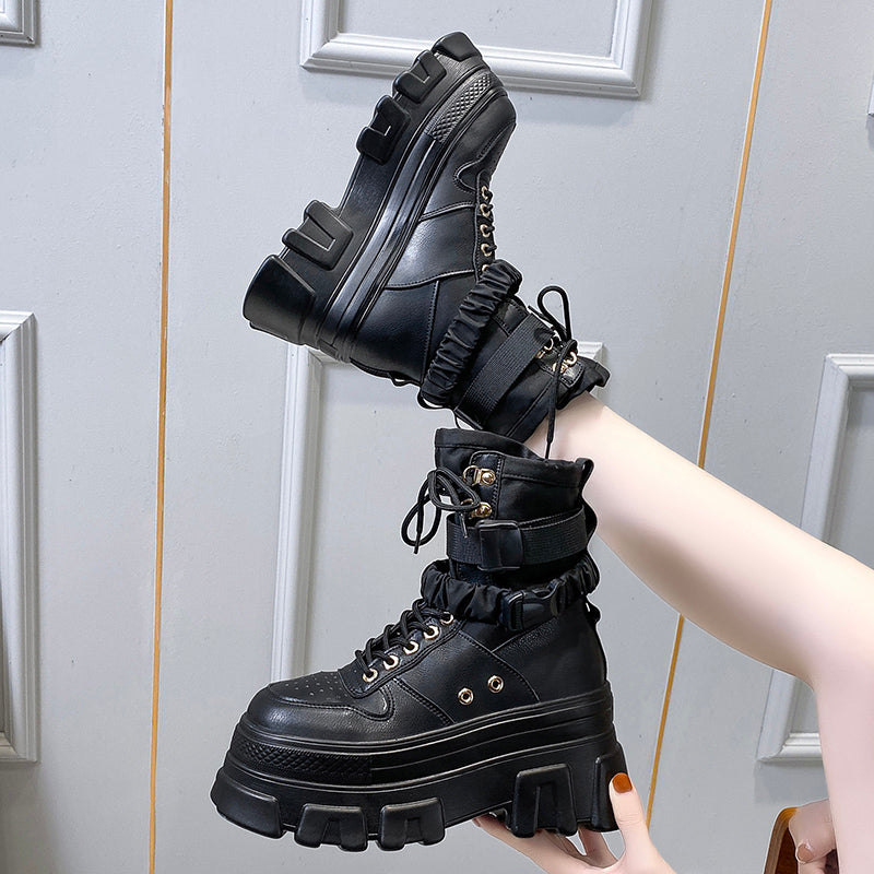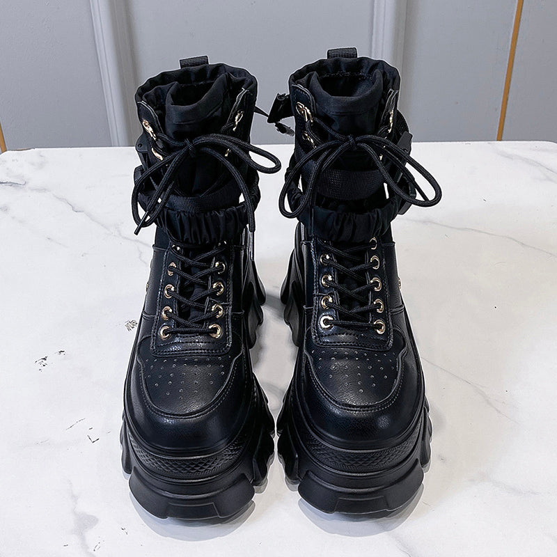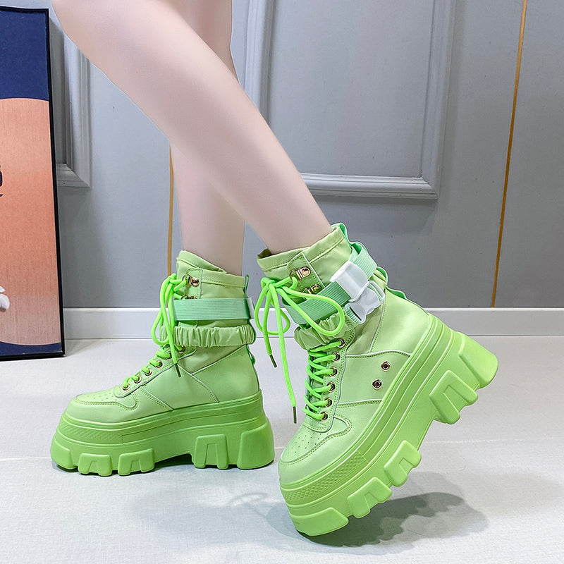 Green Punk Chunky Platform Motorcycle Boots Women Autumn Winter Gothic Shoes Woman Thick Bottom Lace Up Ankle Botas Mujer