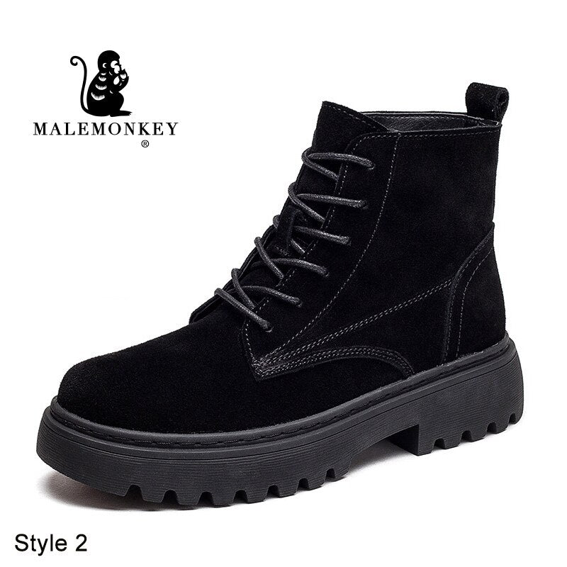 High Qualtiy Women Winter Boots Leather 2021 Fashion Ankle Boots Non Slip Platfrom Boots Warm Short Plush Female Shoes Handmade