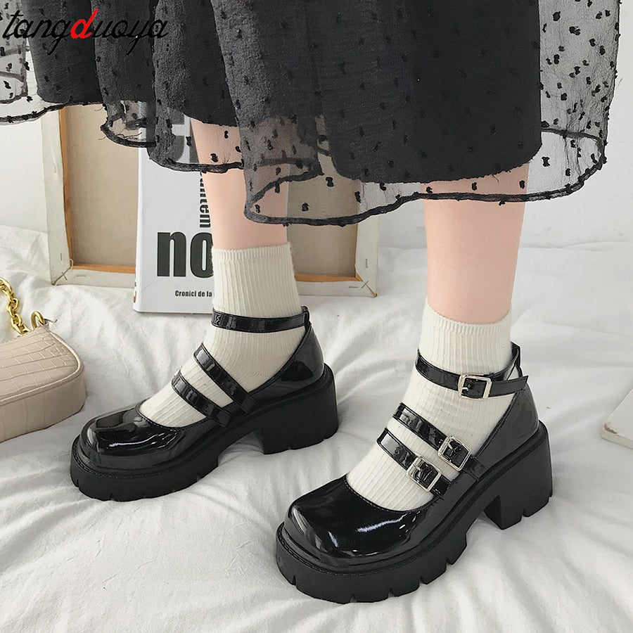 Japanese Style Lolita Shoes for Girls Women JK Black Gothic Thicken College Student cosplay costume High Heel Round Toe Shoes