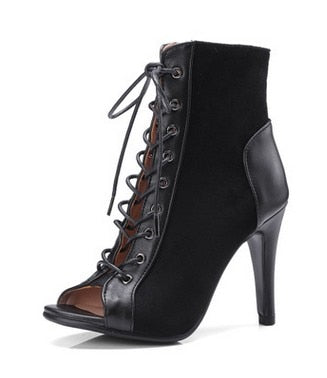 JIANBUDAN Women's fashion summer boots Open Toe Comfortable high heel sandals Lace-Up Casual high heel summer Ankle boots 34-43