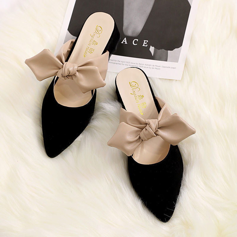 2022 Summer Shoe Designer Sandal for Women Butterfly-Knot Pointed SuedeThick High Heels Luxury Pumps