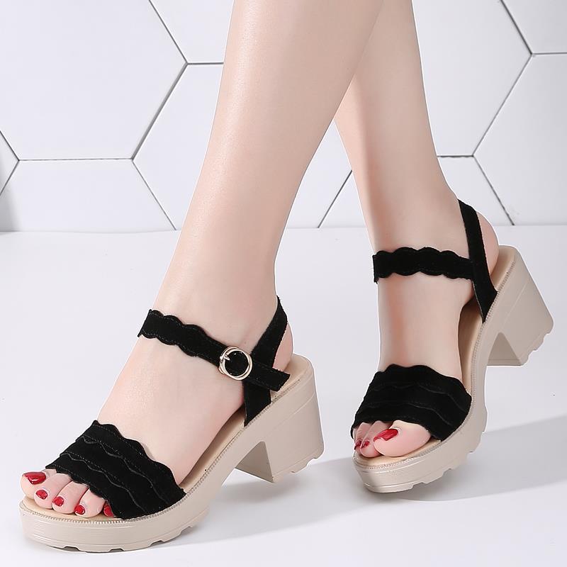 2022 Summer Shoe Sandals for Women Suede Heel Leather Casual Platform Pumps Korean Designer Slipper