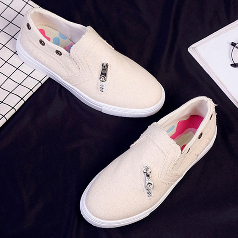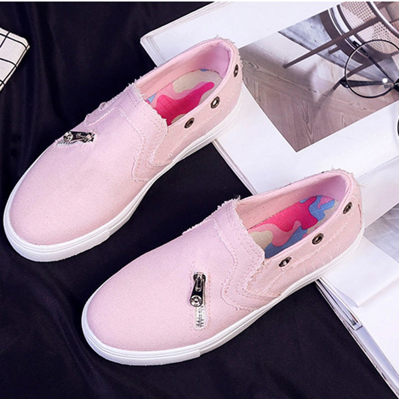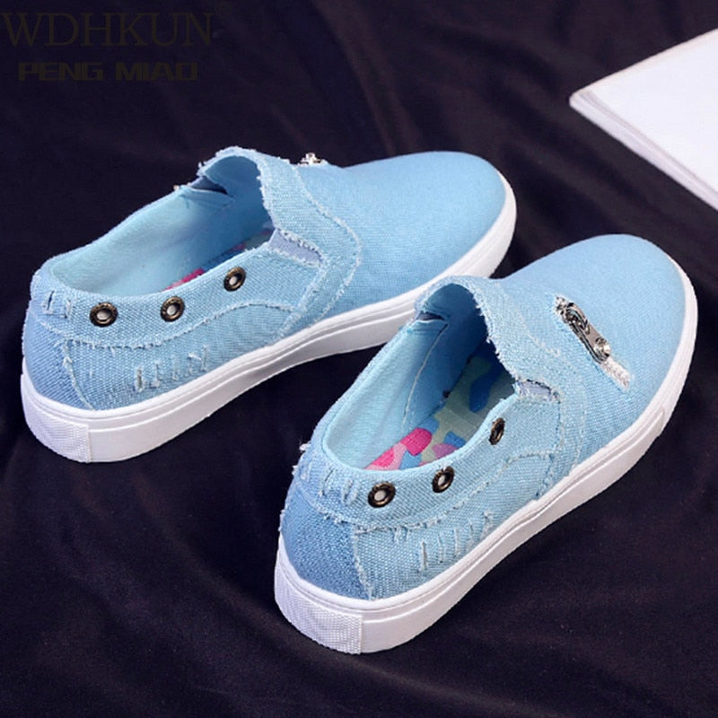 Back To School 2022 Women Canvas Shoes Slip On Flat Shoes Spring Casual Female Denim Fashionable Sneakers Breathable Tassel Footwears