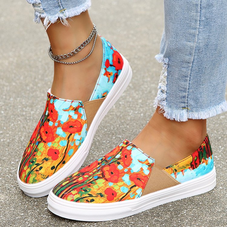 Back To School Shoes For Women 2022 Autumn Fashion Printing Canvas Shoes Women Loafers Women Plus Size Casual Flat Shoes Zapatos Para Mujer