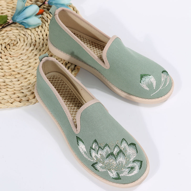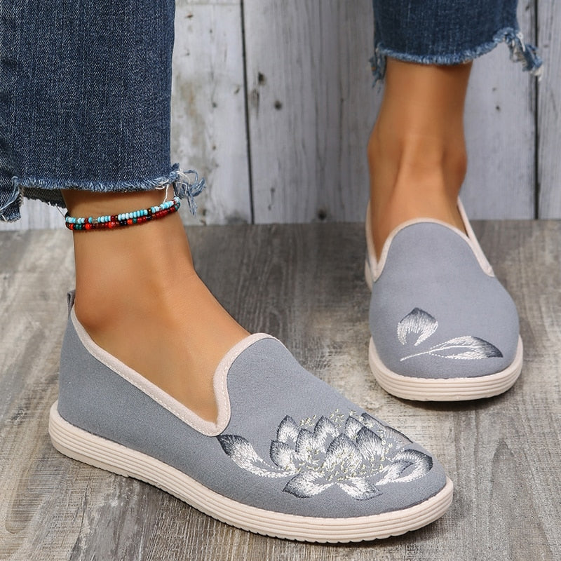Back To School Women Casual Cotton Fabric Embroidered Loafers Ladies Slip On Comfortable Driving Walking Flat Sneakers Shoes Grey Green